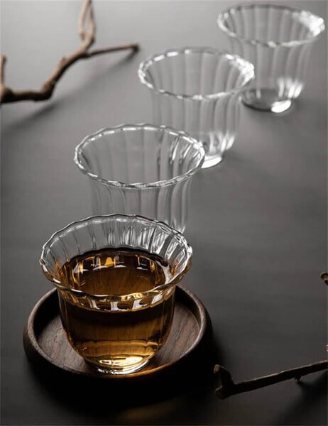 花びらガラスカップ/耐熱ガラス/中国茶器 /お猪口にも